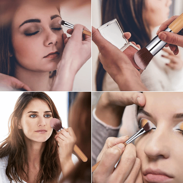 Maxi-Health's Makeup Brush Set is made with high-end synthetic fibers that are vegan and cruelty-free. The brushes are non-shedding and hand-made with long solid wooden handles for a strong grip and comfortable application.