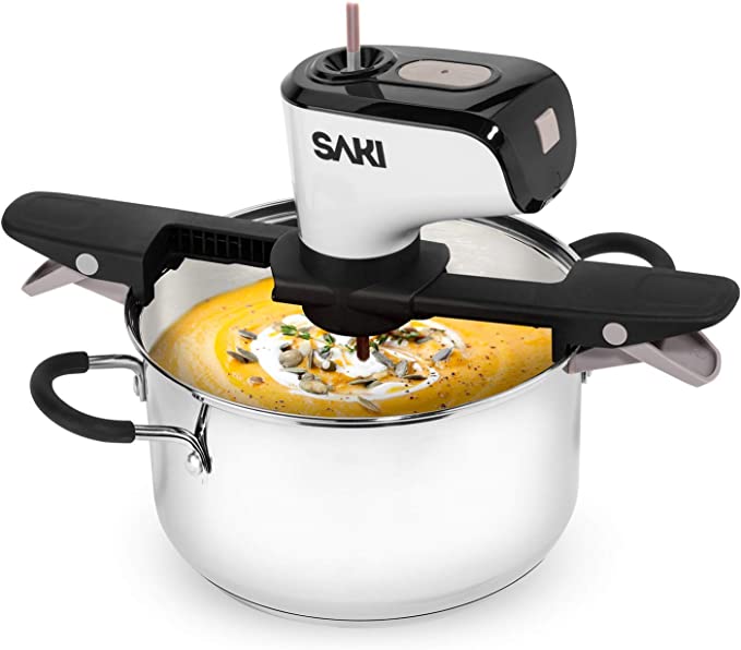 The SAKI Automatic Pot Stirrer is the perfect gift for anyone who loves cooking! Imagine taking the hassle and bother out of stirring by leaving it to a machine. The SAKI Automatic Pot Stirrer attaches to any pot or pan up to 12” in diameter and can be adjusted for stirring speed or removed easily when finished.