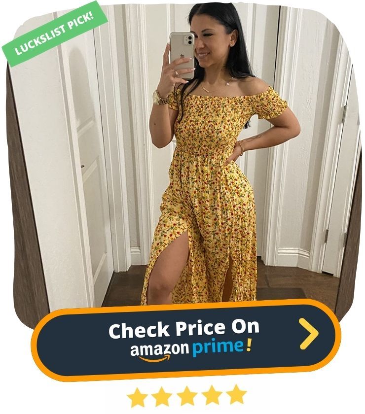 11. Looking for a pretty and casual summer dress? Check out Floerns Women's Boho Print Off Shoulder dress! This long, A-line dress features a ditsy floral pattern and is perfect for a summer day. The off-shoulder neckline and short sleeves are perfect for showing off your sun-kissed skin, while the high waist and split hem add a touch of femininity.