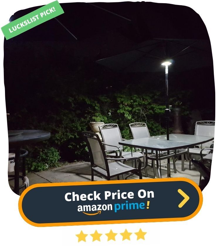 9. Introducing the Patio Umbrella Light 3 Brightness Mode Cordless! This handy umbrella light is perfect for camping, BBQs, playing cards, or just relaxing in your leisure chair in the evening. With three brightness modes, you can choose the perfect amount of light for any occasion. The built-in auto adjustable strong clamp means no extra tools are needed to attach it to your umbrella, and it can also be hung anywhere using the two hooks.
