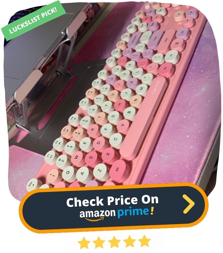 8. UBOTIE's Colorful Computer Wireless Keyboard is unlike any other keyboard on the market. Each key has a unique multicolor design that is sure to make you stand out in the office. The retro round keycaps are a fun throwback to typewriters, and the unique mirror plane design is simply gorgeous.