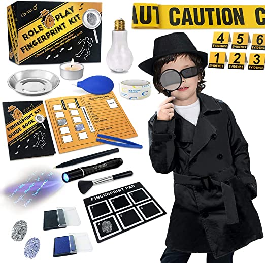 Looking for a fun and unique gift for the young detective in your life? Look no further than the Spy Kit for Kids Detective Outfit Fingerprint Toys! This complete spy kit comes with everything they need to get started on their next big case, including a detective outfit, fingerprint powder and brushes, a magnifying glass, and more.
