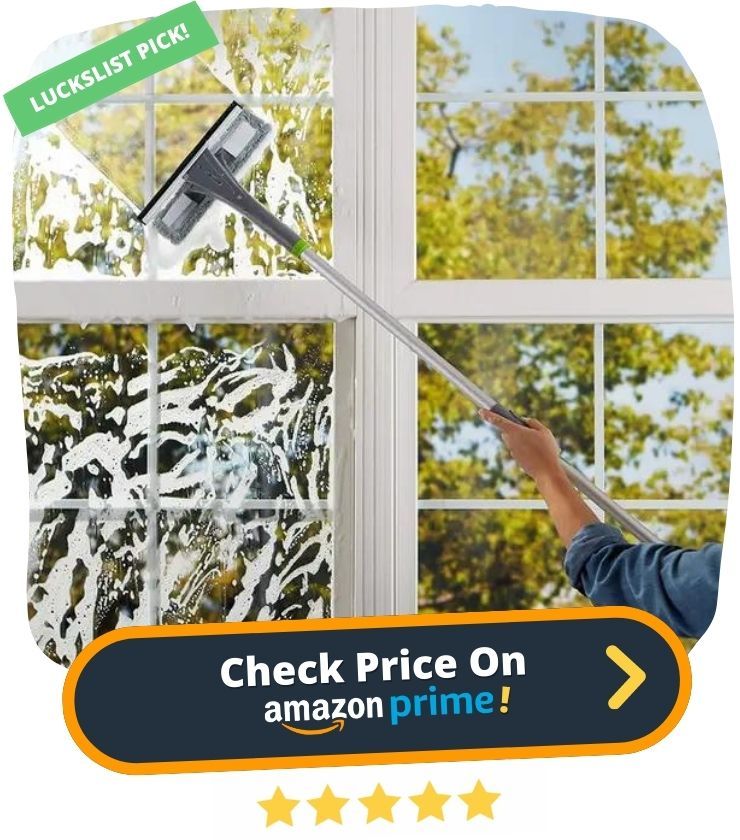 10. The Amazon Basics Extendable Window Squeegee is the perfect tool for safely and conveniently cleaning indoor and outdoor windows. The spray head dispenses water or window-cleaning solution, and the absorbent microfiber scrubbercloth on reverse side removes stubborn dirt and wipes away excess water. The rubber blade won’t scratch glass and effectively leaves windows supremely dry and streak-free.