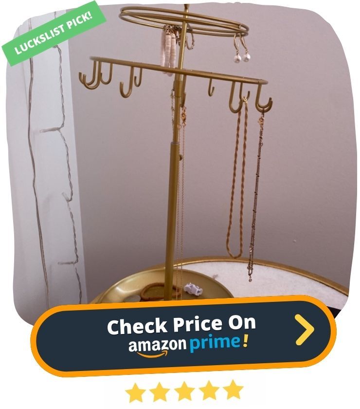 1. Looking for a way to show off your favorite jewelry? Check out the Amazon Basics Spinning Jewelry Tree Stand! This stand has a spinning mechanism that's perfect for hanging earrings, necklaces, bracelets, and more. Plus, it's space-saving carousel design means you can keep your accessories at your fingertips. It has 2 tiers positioned at different heights for hanging a variety of jewelry styles and lengths.