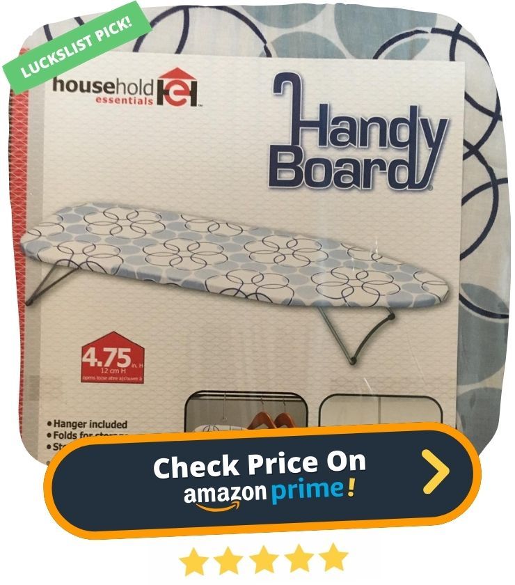 16. Looking for a small and lightweight ironing board that can easily be stored away? Look no further than the Household Essentials Small Tabletop Ironing Board! This stable steel top ironing board is perfect for apartments, dorms, or other small spaces. The board has a swivel hook feature that hangs over commercial and residential doors or on a closet rod, and the steel legs fold away for easy storage.