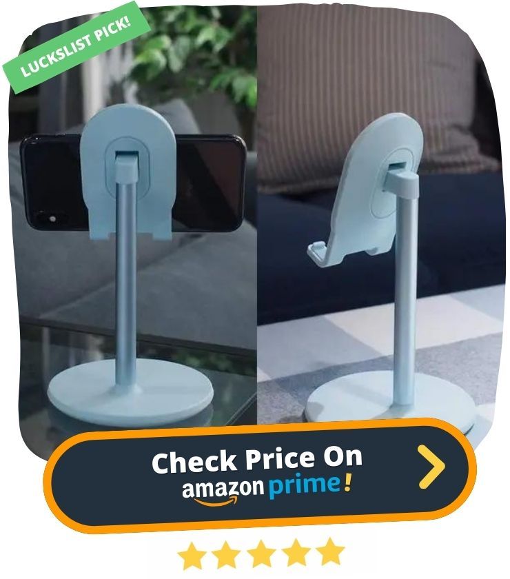 7. Are you looking for a phone stand that is compatible with all smartphones and tablets? Look no further than the BRIGHTSTONE Phone Stand for Desk! This phone holder is perfect for any iPhone, Samsung Galaxy, or Android device up to 12.9 inches. With its adjustable angle from 5° to 45°, you can view your phone in both vertical and horizontal positions.