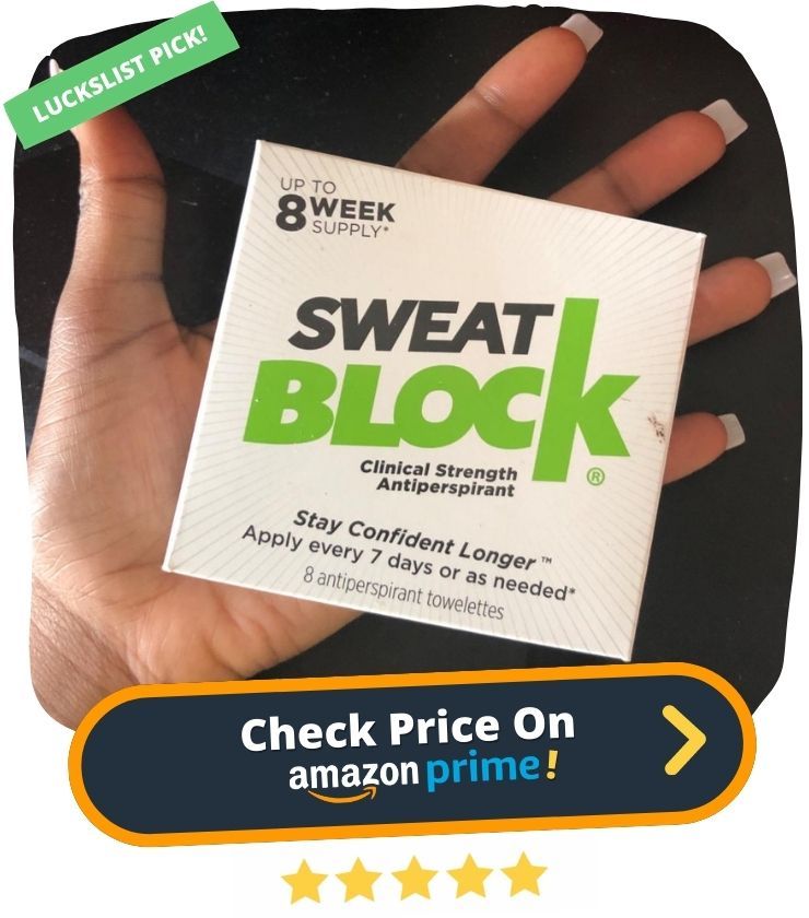 9. Embarrassing sweat stains are a thing of the past with SweatBlock Antiperspirant Wipes. Say goodbye to worrying about underarm sweat and hello to confidence. These clinically-proven wipes are strong enough to provide long-lasting protection against even the heaviest sweating, making them ideal for those with hyperhidrosis or who are taking medications that cause excessive sweating.