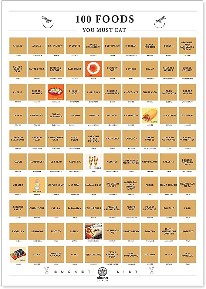 If you love food, then this is the perfect gift for you! The 100 Foods You Must Eat Bucket List is a fun and entertaining way to discover new foods and recipes from all over the world. This book is a must-have for any food lover, as it features an extensive list of delicious foods that you must try in your lifetime.