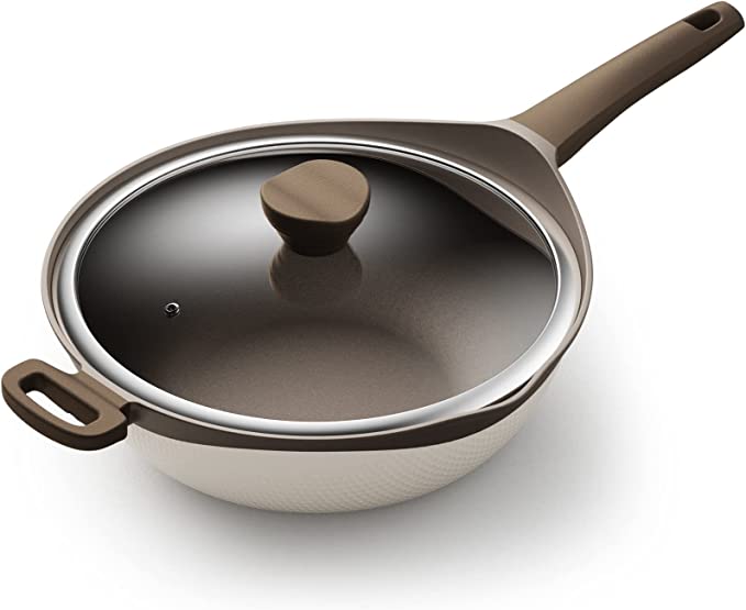 Cook meals that are both healthy and delicious using this Chinese clay wok nonstick die-cast aluminum. This wok is made with a 5-layer durable coating, ensuring your wok remains strong and stable over time. Its aluminum interior thickened china clay outer layer ensures efficient heat distribution and prevents hot spots while cooking keeping your food safe and evenly cooked. Its flat bottom allows the pan to be placed evenly over almost any heat source; induction cooker, gas stove, etc., making it easy to use and convenient when you need it.
