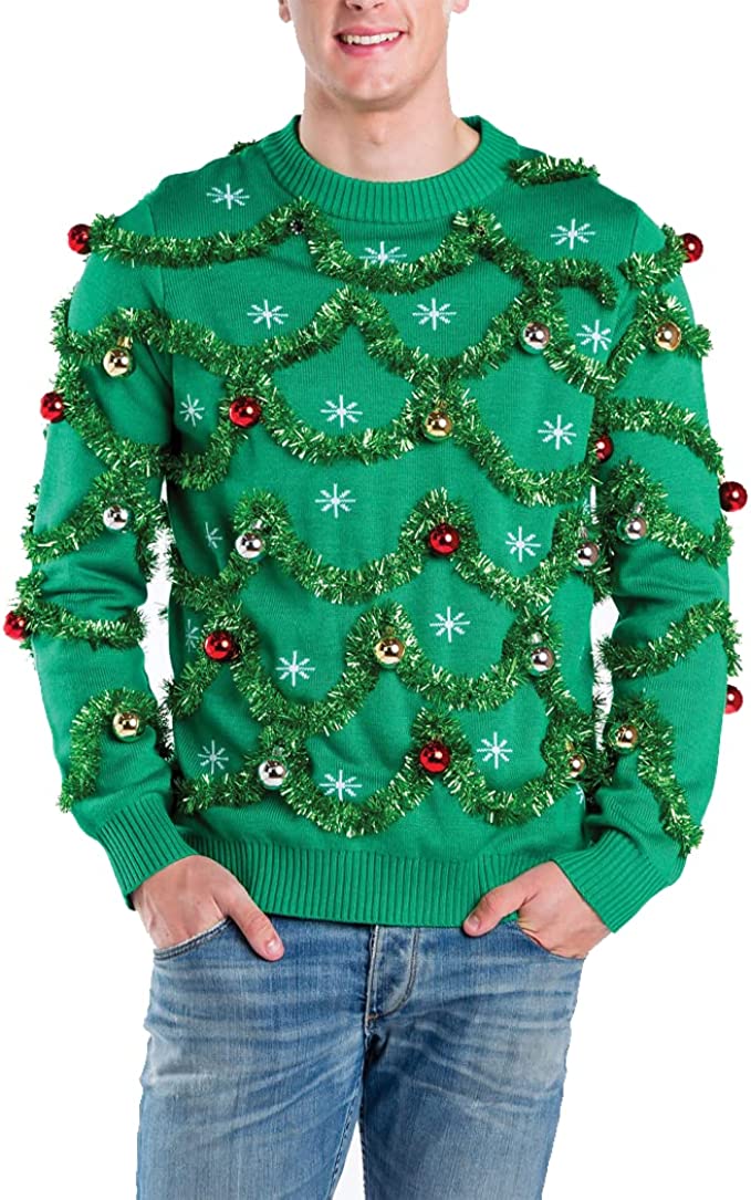 This Men's Ornament and Garland Sweater is the perfect gift for that hard-to-shop-for man in your life. It is a unique and stylish sweater that is sure to make a statement. It is made of 100% acrylic and is machine washable. The ornaments and garland design is eye-catching and festive, and the sweater is sure to keep you warm all winter long.