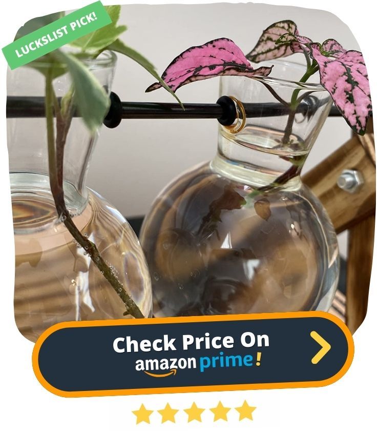 11. This CFMOUR terrarium is perfect for anyone who wants to add a bit of greenery to their home or office! The compact and retro design features 5 transparent bulb vases on a classic wooden frame - perfect for propagating cuttings or displaying small plants. With its adjustable width, this terrarium is also great for floral arrangements or gift giving.