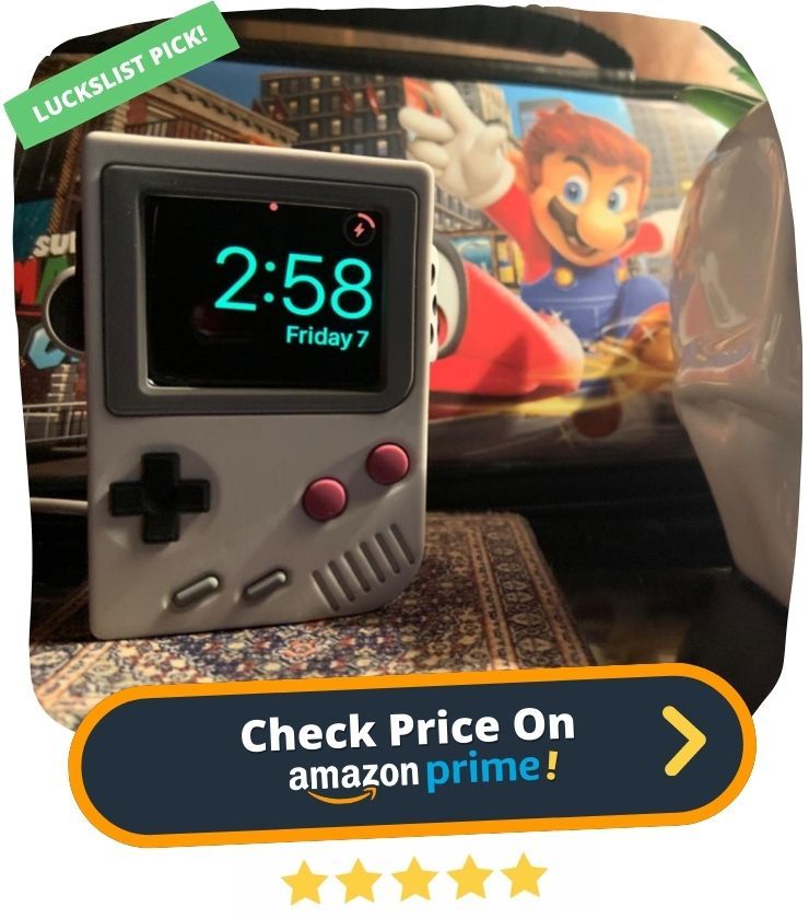 "I am in love with this thing. I went in search for a new watch stand because the one I had before sometimes wouldn’t let the watch fully charge overnight. It somehow dropped off the magnetic charger. I found this, fell in love with the design, Nintendo Game Boy!!! and had to have it."