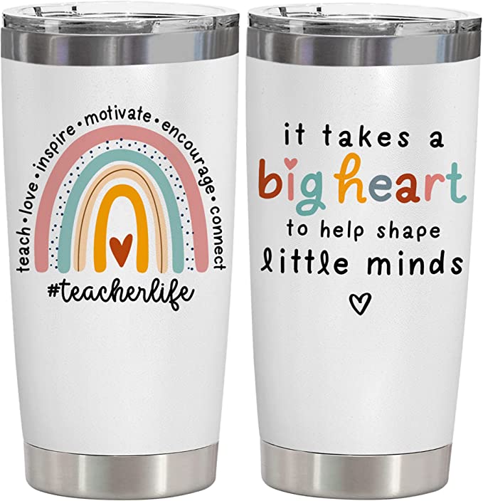 As a teacher, you work hard to make a difference in your students' lives. Show your appreciation with this 20oz Teacher Tumbler Cup. This tumbler cup makes a great gift for any occasion, and is sure to be used and appreciated by the special teacher in your life. The double-walled construction keeps hot drinks hot and cold drinks cold, making it the perfect choice for any beverage.