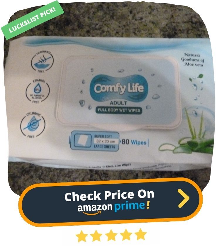 6. Looking for a fresh bed-bathing experience without water? Comfy Life Luxury Full Body Wet Wipes are perfect for those times when you can’t be in the shower! Made with Hypoallergenic materials and containing the natural goodness of Aloe Vera, these thick, soft, and strong wipes will leave your skin feeling soft & moisturized.