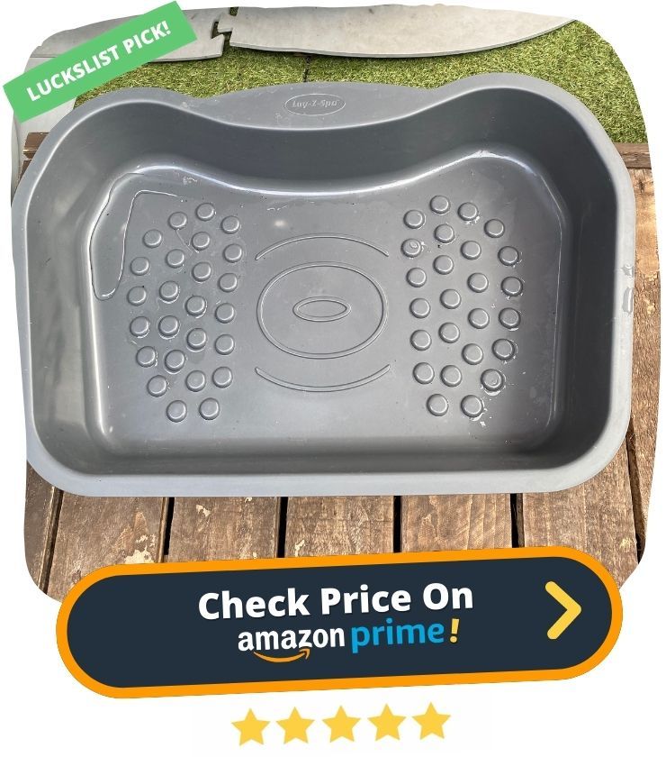 "Brilliant. Fed up of husband traipsing bits into inflatable then bought a posh hard tub so bought this. Read reviews saying flimsy & not worth the money others saying put washing up bowl down 😩 Let me tell you I’m not having a washing up bowl in front of my posh tub. Narrow enough to slot under the tub steps and when finished for night I turn upside down & slot back underneath, simple."