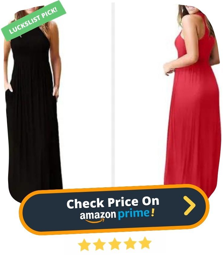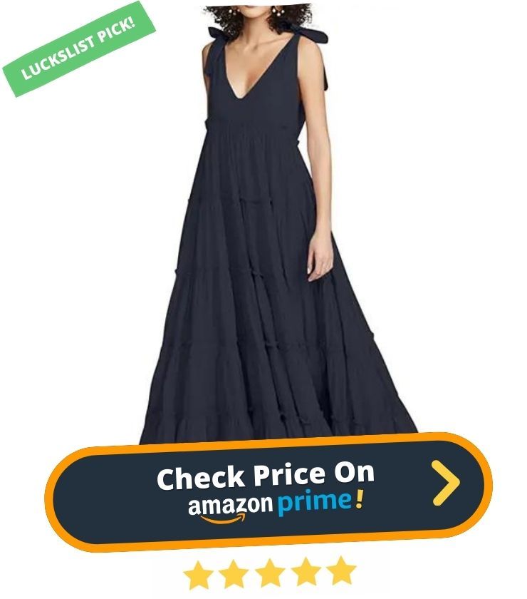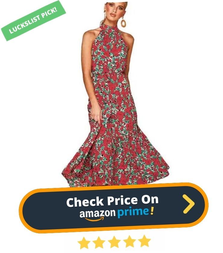 11. Looking for a dress that exudes bohemian charm? Look no further than this Halter Neck Maxi Boho Dress. Made from a soft blend of 65% polyester and 35% cotton, this dress is both comfortable and stylish. The halter neckline is both unique and flattering, while the sleeveless design keeps things cool and airy.