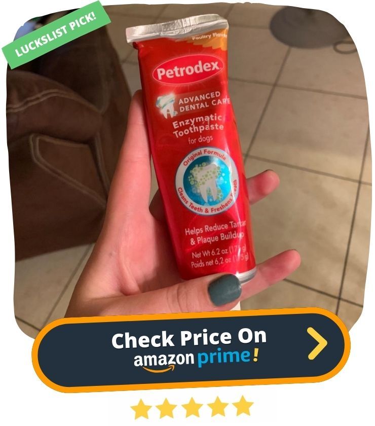 17. Looking for a toothpaste that will make your dog's teeth sparkle and their breath smell amazing? Look no further than Petrodex Enzymatic Toothpaste and Brushes for Dogs! This toothpaste is designed to reduce plaque and tartar formation, and contains patented enzymes that make it super effective. Plus, it comes in a delicious poultry flavor that dogs love. Just brush 2-3 times per week for best results.