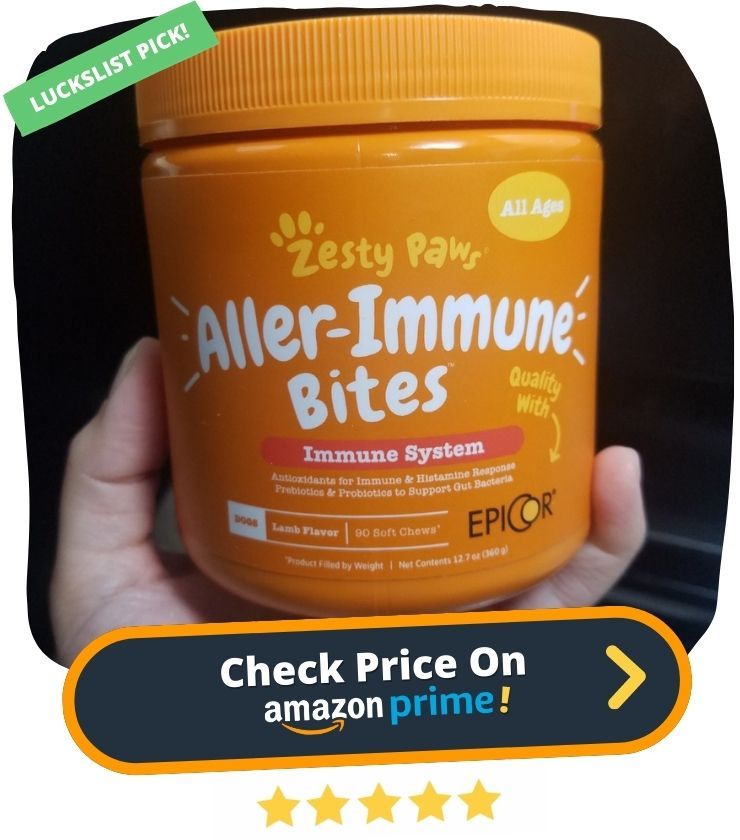 10. Introducing Zesty Paws Allergy Immune Supplement for Dogs! This powerful supplement is designed to boost your dog's immune system, helping them to stay healthy and fight off allergies. Epicor is a clinically-proven super ingredient that helps to support the body's natural defenses, while the prebiotic and probiotic complex helps with digestive and immune health. And if that wasn't enough, each chew also contains wild Alaskan salmon oil, rich in Omega 3 fatty acids EPA and DHA, to help soothe itchy skin and hot spots.