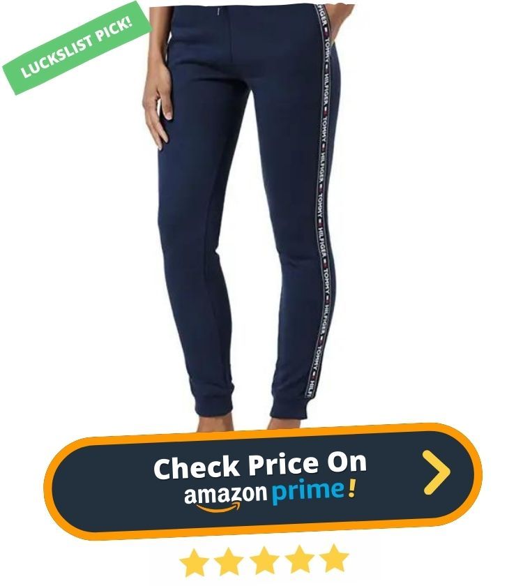4. Introducing the Tommy Hilfiger Women's Track Pant Bottoms. These classic joggers are crafted from a cotton-rich knit, ensuring warmth and comfort. Featuring signature drawstring ends, repeat logo tape on sides, and the Tommy flag embroidered on the back pocket, these tracksuit bottoms personify the preppy American style that Tommy Hilfiger is known for.