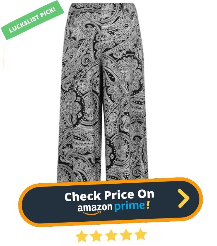 7. Look chic and feel comfortable in a pair of our paisley print trousers. The elasticated waist provides a snug and comfortable fit, while the wide flared leg gives a flattering silhouette. Made from a lightweight fabric, these trousers are perfect for summer days or evenings out.