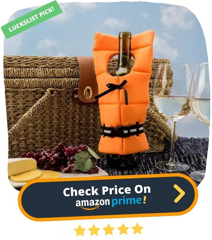 7. Set sail for flavor with the Boston Warehouse Life Preserver Wine Bottle! This nautical-themed wine accessory is perfect for beach or lake picnics, and adds a decorative touch to any tabletop or counter. The bottle neck strap and elastic base band easily adjust for a perfect fit on standard sized wine bottles, and the life preserver design is sure to get attention.