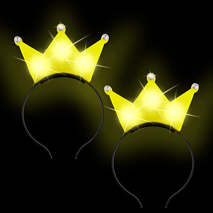Make your little one's next birthday party or play date extra special with these 2 PCS Light up Led Crown Yellow Headband. They are perfect for dressing up and adding some extra fun to the occasion. Each headband features a yellow crown with LED lights that flash when activated.