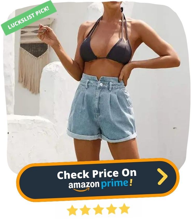 22. Looking for a pair of denim shorts that are both stylish and comfortable? Look no further than JASAMBAC Women's High Waisted Denim Shorts with Pockets. These shorts are made from a soft, stretchy cotton blend that is sure to keep you comfortable all day long. They feature a high-rise waistline with a v-cut design, washed denim fabric, pleated details, and a wide leg rolled hem.