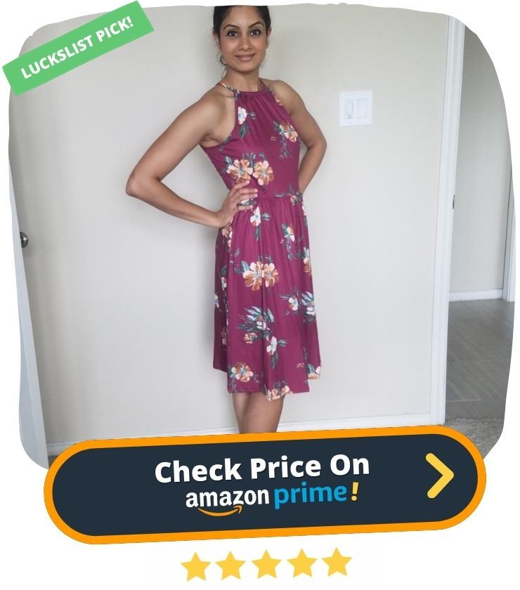 17. Looking for a summer dress that's sure to turn heads? Look no further than the KILIG Women's Halter Neck Floral Summer Dress. This pretty sundress features a halter neckline that accentuates your shoulders and clavicle, while the A-line silhouette flatters your figure. The hem falls just above the knee, making it perfect for a day in the sun.