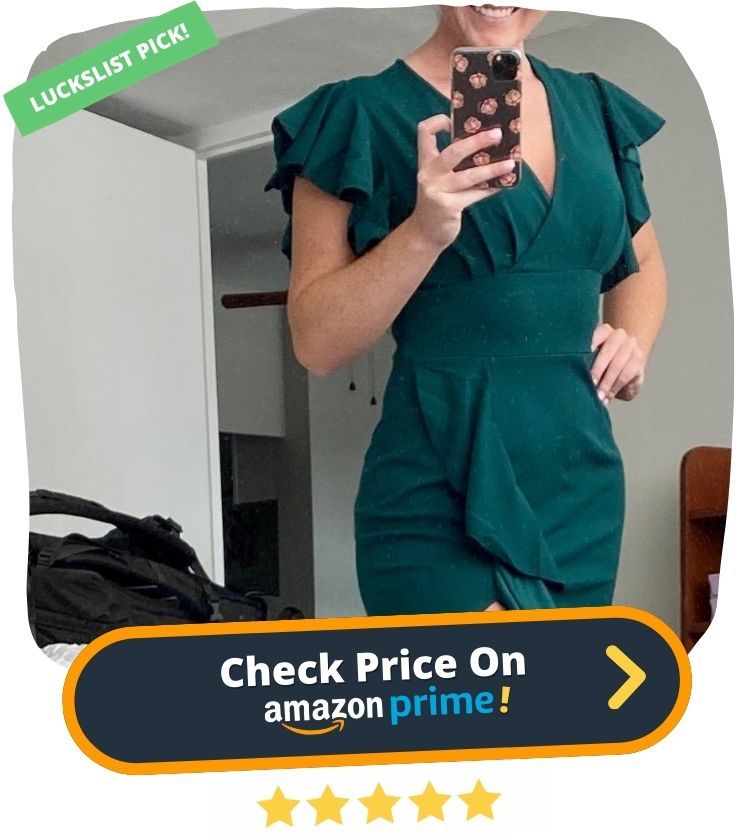 5. Looking for a gorgeous cocktail dress that will make you the star of any party? Look no further than the Knitee Women's Deep-V Neck Ruffle Sleeves Cocktail Dress! This show-stopping dress features a deep v-neck that highlights your chest area, split hem that shows off your legs, and ruffle sleeves for an extra touch of glamour.