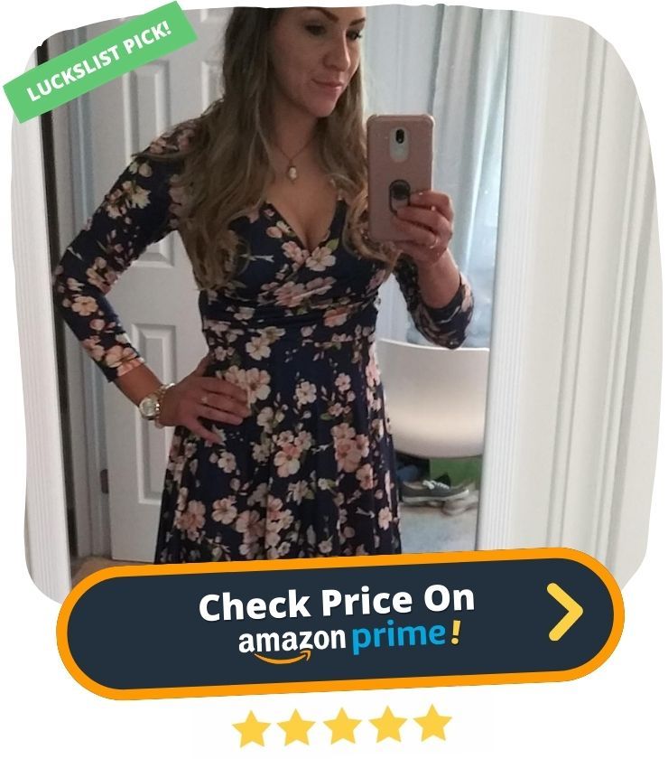 "This is a beautiful dress, flattering, stays in place, great material, well made, and I love the army green color!! I initially bought a small in navy blue (which I also loved) but opted to return for the medium."