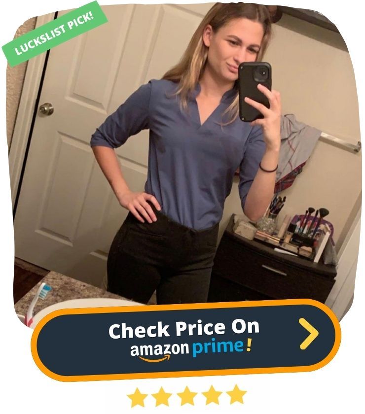 19. Looking for a top that's both comfortable and stylish? Check out this CEASIKERY Women's 3/4 Sleeve V Neck Loose Shirt! Made from a soft, silky fabric, this shirt is perfect for everyday wear. The loose fit and flowy bottom hem add a touch of style, while the V-neck elongates the neck for a slimming effect. Plus, the breathable fabric is perfect for cool autumn days. Whether you're wearing it with jeans or leggings, this shirt is sure to turn heads!