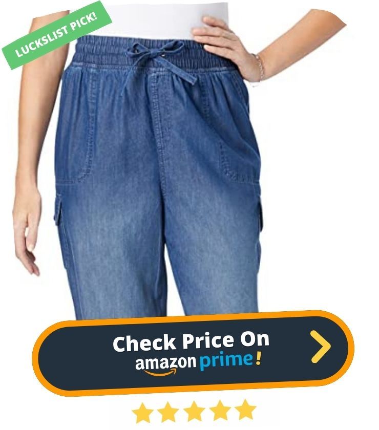 17. Looking for a versatile and comfortable pant that you can wear both long and short? Look no further than this Women's Plus Size Convertible Length Cargo Pant! Made from a lightweight and airy cotton fabric, these pants are perfect for hot summer days. The drawstring waist ensures the perfect fit, while the button tabs at the hem allow you to roll them up into capri-length.Small cargo pockets on the sides along with back patch pockets and topstitched slant pockets add to the utility feel of these pants.