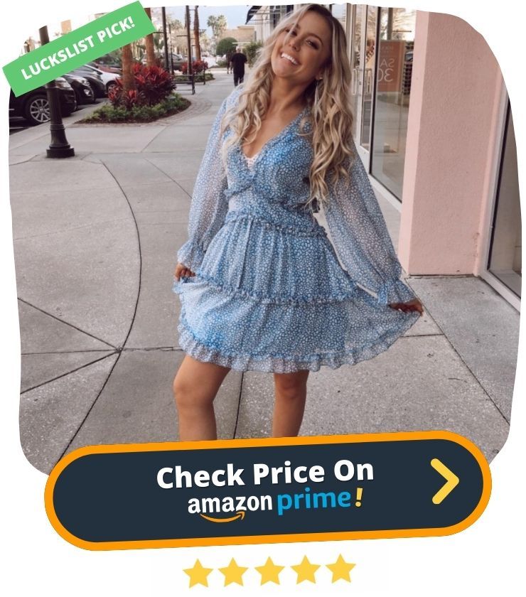 2. Looking for a dress that will turn heads? Look no further than the Eytino Women Sexy V Neck Long Sleeve. Made from a soft and comfortable material, this dress is perfect for any occasion. The sexy v neck and backless design is sure to get you noticed, while the floral print and ruffles add a touch of elegance.