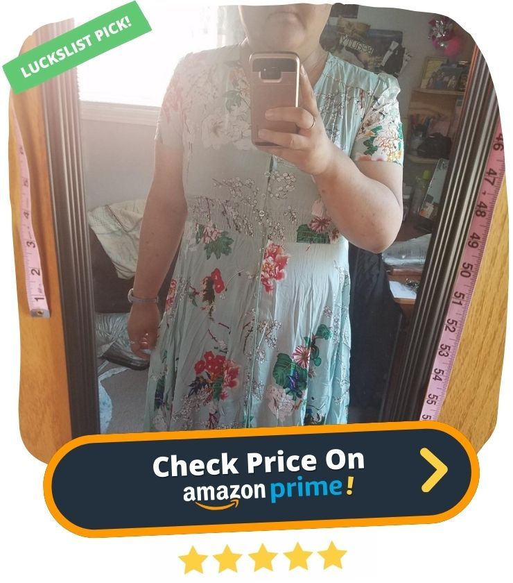 "This dress is the best clothing item I’ve purchased on Amazon! Exceeded my expectations! Love the light airy material, very cool for summer. And the fit was perfect for my body shape."