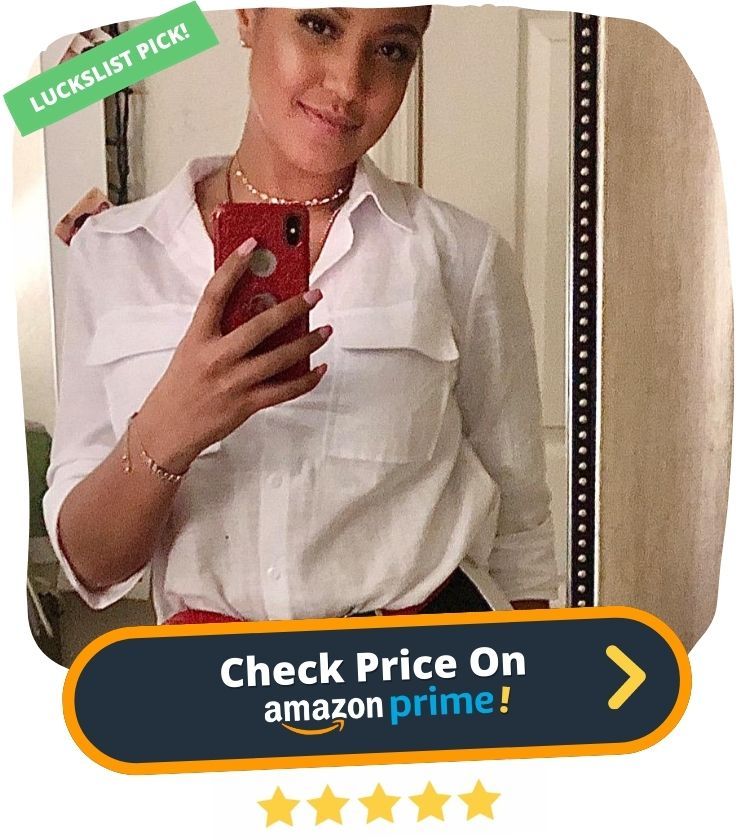 16. Looking for a stylish and elegant button down shirt that you can wear both to work and on the weekends? Look no further than this Women's Button Down V Neck Shirt! Made from a lightweight fabric, this shirt is perfect for hot summer days. The cuffed sleeves can be worn rolled up or down, and the turn down collar adds a touch of sophistication.