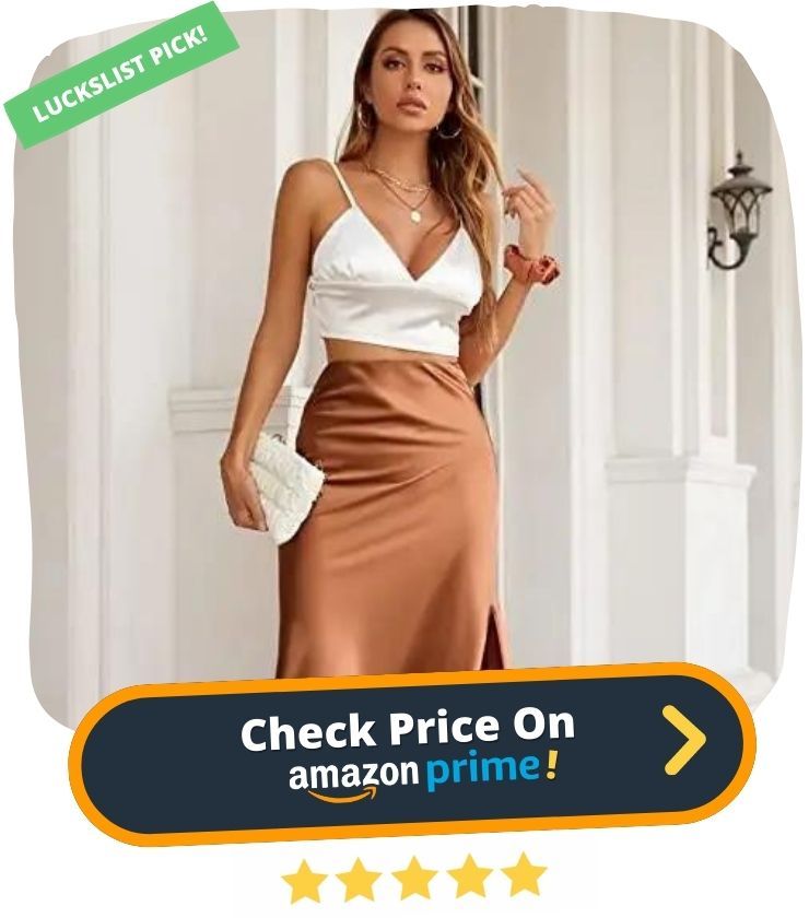19. Looking for a versatile and stylish skirt? Look no further than the Alcea Rosea Women's Midi Skirt! This chic skirt is made from silky satin fabric and features a bias cut, A-line silhouette, and full elastic waist. The high split on the left side makes it perfect for showing off your favorite heels, and the long bodycon design ensures a flattering fit.