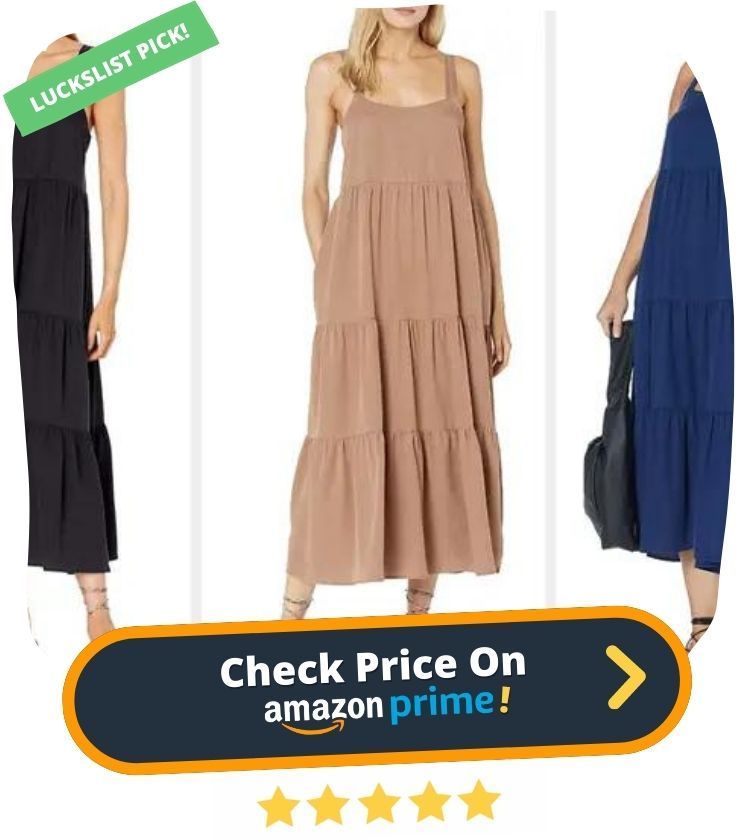 1. Introducing the Women's Brit Tiered Ankle Maxi Tent Dress from Staples by The Drop. This ultra-comfortable maxi dress is perfect for any occasion, whether you're relaxing at home or exploring the great outdoors. Made from a buttery smooth Tencel lyocell blend, it features on-seam side pockets and hidden button adjustable length straps which can be worn crossed for added edge.