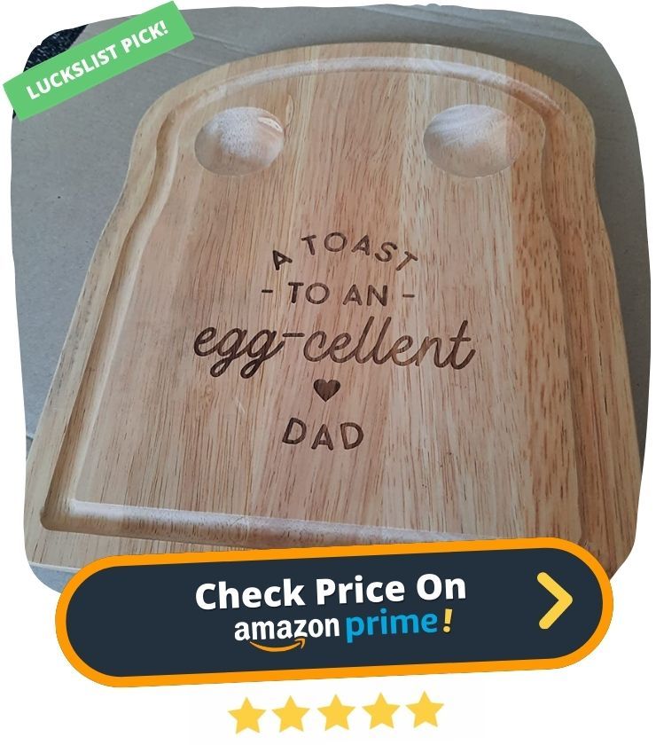 19. Start your day off right with this "A Toast to an Egg-cellent Dad" breakfast board! This unique toast shaped breakfast board is the perfect way to show your dad some love. It comes with egg cup holders and is engraved with a funny pun design. It makes a great birthday or Father's Day present idea.