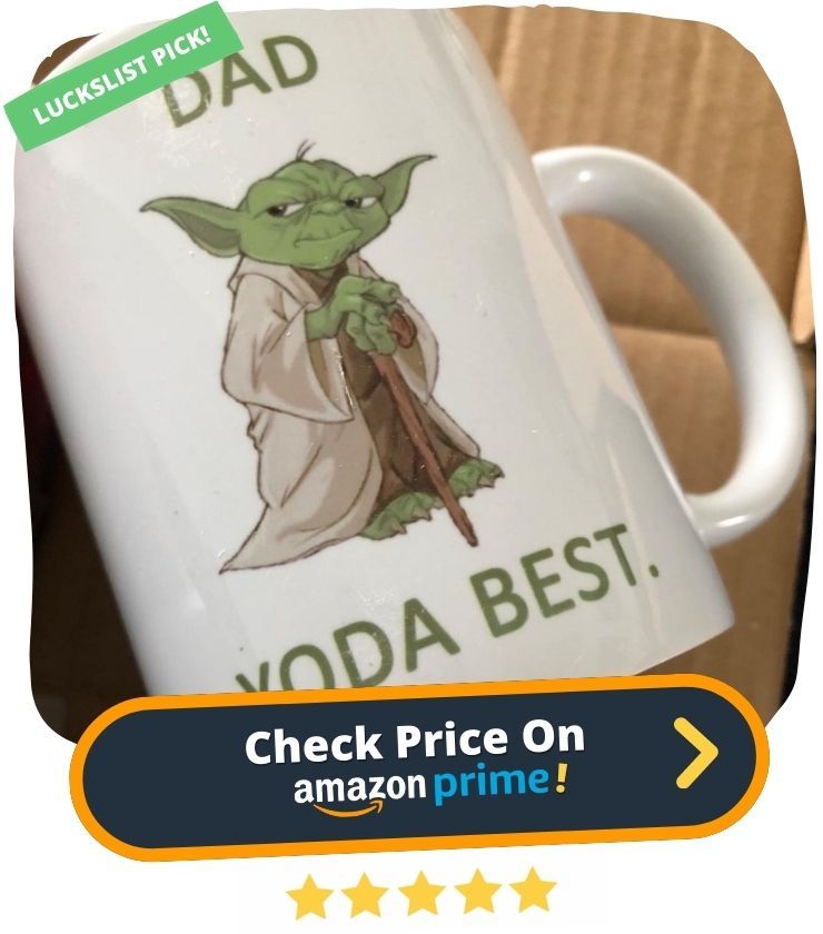 24. Introducing the GrassVillage Dad Yoda Best Novelty Gift Mug! This great mug makes a perfect gift for any occasion, and is sure to put a smile on any Dad's face. The mug is printed on both sides with a high quality design, and is made of durable ceramic construction. It is safe for microwave and dishwasher use, and features a large easy-grip handle.