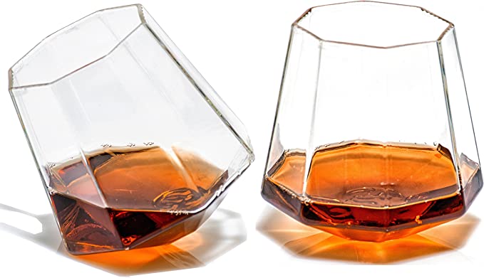 Impress your friends with these stylish diamond whiskey glasses. This set of 4 rocks glasses are perfect for serving your favorite scotch, rum, or tequila. They make a great gift for the whiskey lover in your life. These lead-free glasses are handcrafted with 32% lead-free crystal and feature a weighted bottom for added stability.