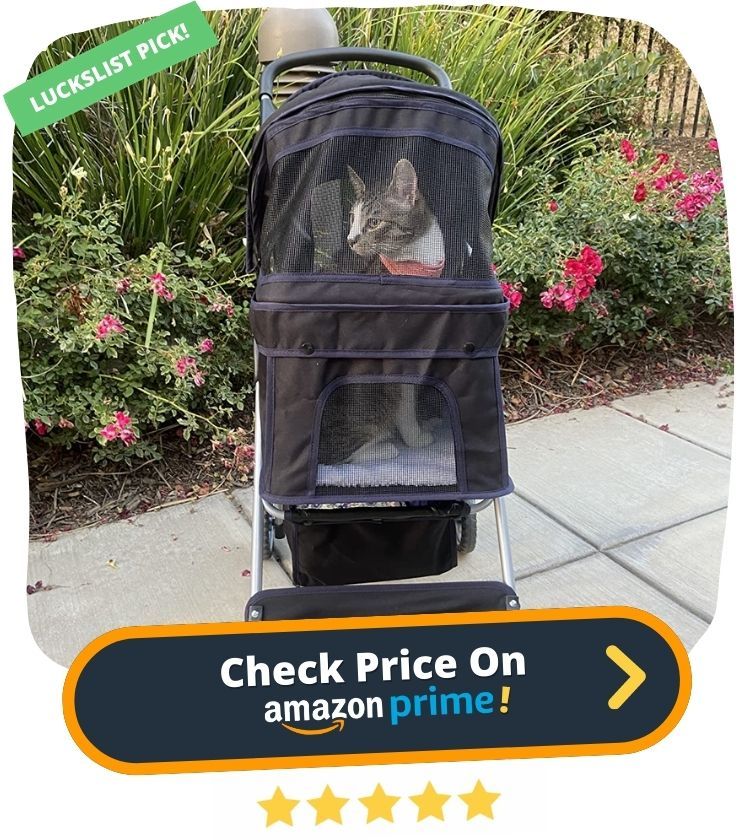 23. Looking for a pet stroller that's easy to travel with and keeps your pets safe and comfortable? Look no further than the BestPet Pet Stroller! This stroller features swivel front wheels for easy navigation, a one-hand fold feature, and a lightweight yet sturdy design. Plus, the rear brakes ensure your pets are always safe. And with the padded interior and upper mesh window, you can keep a close eye on your furry friends.