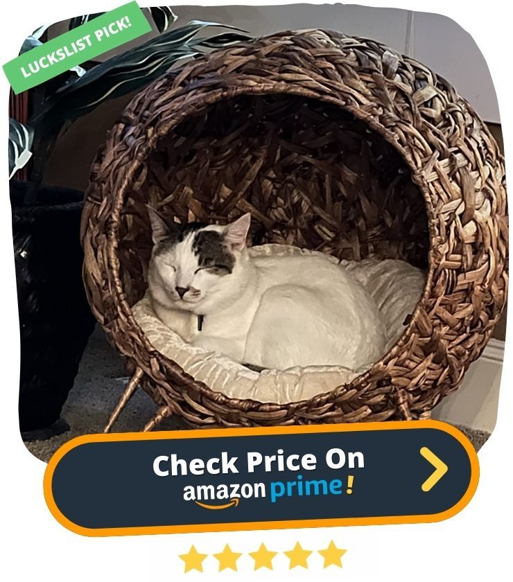 24. Looking for a place for your cat to relax and decompress? Look no further than the PawHut 20.5" Weaved Cat Bed! This bed is made from woven rattan, which is odorless and ventilated, providing your furry friend with the perfect place to escape from the hustle and bustle of daily life. The bed is also equipped with a soft cushion, made from a polyester and cotton blend, ensuring your cat is comfortable at all times.