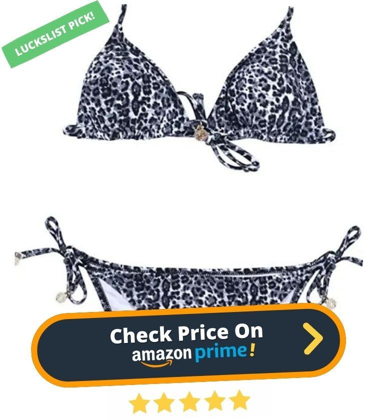 14. Introducing this women's two pieces leopard print bikini! This swimsuit is perfect for anyone who wants to stand out and make a statement at the beach or pool. Made from a high quality nylon and elastane blend, this swimsuit is both comfortable and figure-flattering. It features a padded top, high cut legs, and a plunging v-neckline that will give you the ultimate hourglass shape.