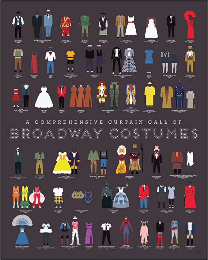 Give the gift of Broadway with this Broadway Costumes Poster! The perfect present for any theater lover, this poster features some of the most iconic costumes from Broadway shows past and present. From the glittering gowns of the chorus girls to the magnificent dresses of the leading ladies, this poster is a true work of art.