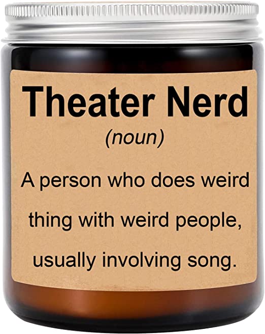Theater Nerds rejoice! This is the perfect gift for the theater lover in your life. The Theater Nerd Candle is a soy candle with a cotton wick, hand-poured in small batches. It has a clean-burning, long-lasting burn and emits a strong, pleasant scent.