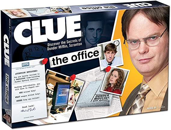 Hasbro's CLUE: The Office Edition Board Game is the perfect board game for any fan of the popular TV show! This edition of the classic mystery game features your favorite characters from The Office, including Michael Scott, Dwight Schrute, and Pam Beesly. The objective of the game is to figure out who killed Toby Flenderson, where the crime took place, and what weapon was used.