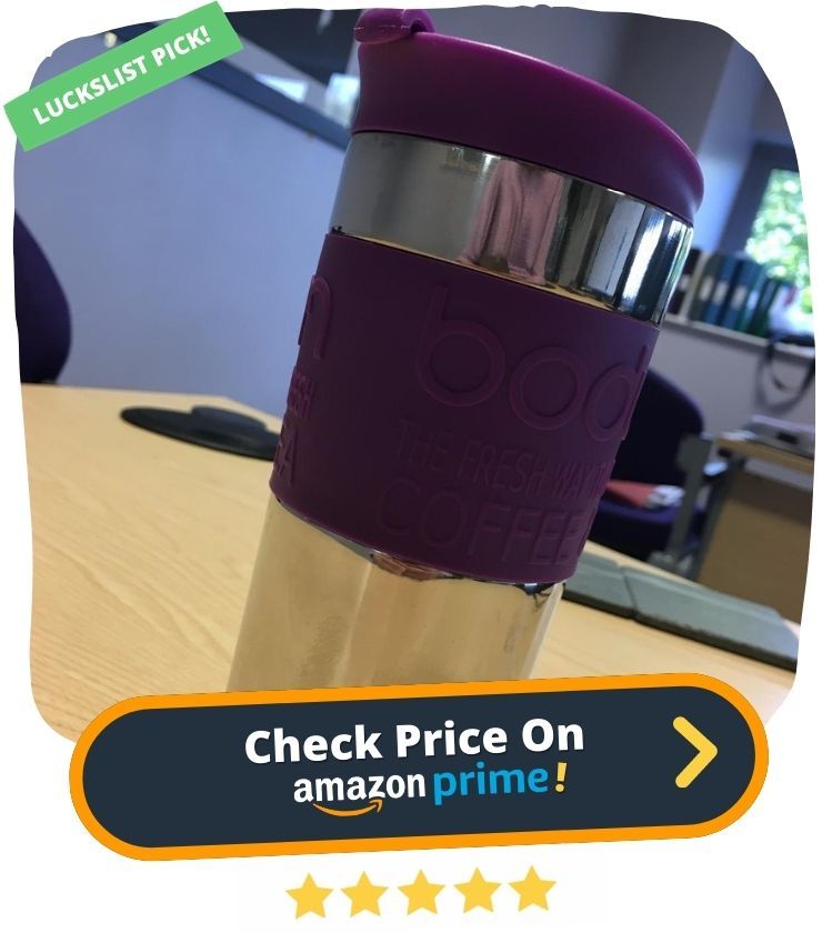 16. Looking for a French press coffee maker that you can take on the go? Look no further than the BODUM Travel French Press Coffee Maker Set. This coffee maker is perfect for making delicious French press coffee anywhere, anytime. It features a non-skid rubber base and comfortable ergonomic grip with silicone band, so it's easy to hold onto while you're making your coffee.