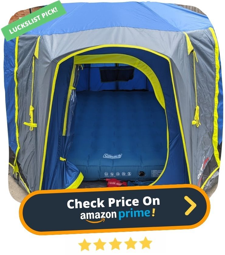 29. The Coleman Octago 3 Man Tent is perfect for any camping trip, providing a 360 degree view of your surroundings and enhanced ventilation. With seven large windows and a mesh roof, this family size tent is perfect for camping in any weather. The hinged door opens like a real door for easy access, and the colour-coded steel poles make set up a breeze.