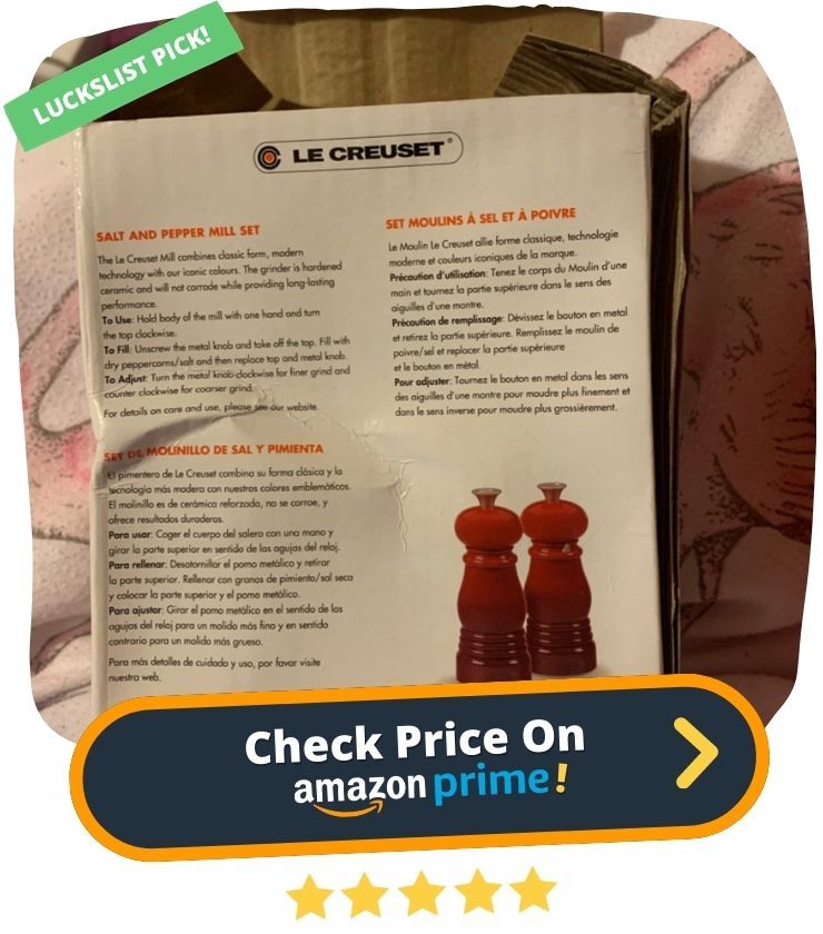 31. The Le Creuset Classic Salt & Pepper Mill Set is the perfect way to add a little spice to your life! These lightweight, chip-resistant mills are made from durable ABS plastic and features an embossed Le Creuset logo. The ceramic grinder is anti-corrosion and can be adjusted for a coarse or fine grind.