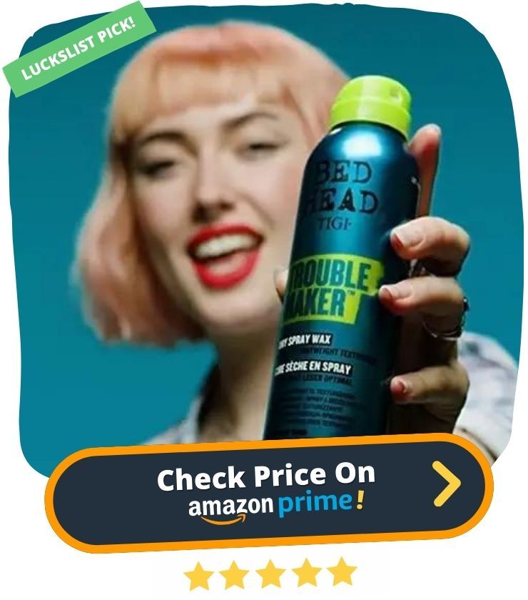 26. Looking for a little trouble? Meet Bed Head by TIGI's new Dry Spray Wax. This powerful texturising spray provides medium to long hair with instant texture and a natural, undone look. Perfect for those who want a bit of extra oomph in their hairstyle, the Wax Spray locks in style with a soft, touchable finish.